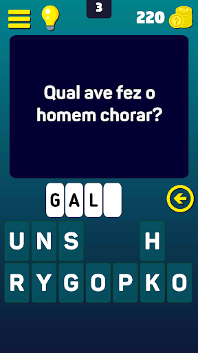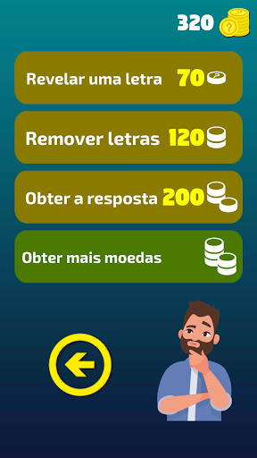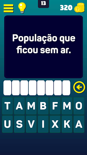 Digite a resposta usando as letras disponíveis, acerte questões e acumule moedas para comprar dicas em questões que você considerar mais difíceis.