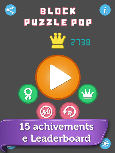 Quebra-cabeça de blocos pop é um jogo simples, sem limites de correspondência de cores e de tempo. encher a linha ou coluna para quebrar os blocos. é um jogo de puzzle bloco aditivo. os mais blocos você quebrar, mais pontos você terá.