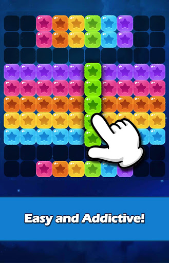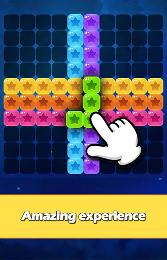 Arraste formas de bloco da parte inferior do tabuleiro e combine qualquer linha ou coluna para esmagar os blocos de estrela de linha ou coluna inteiros (sem necessidade de correspondência de cores).