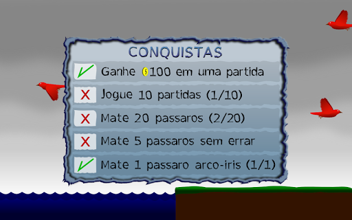 Seja perspicaz e tenha certeza que o pássaros abatidos caiam no chão. Você não ganhará moedas com os pássaros que caírem na água.