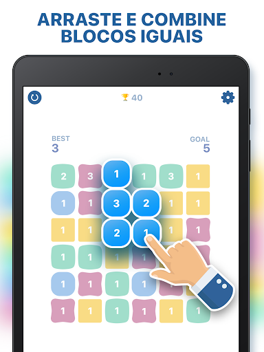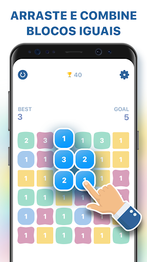 Cada bloco tem um peso com o número. Combine dois ou mais blocos da mesma cor, somando o peso dos blocos. Quanto mais blocos você combina e soma, mais aumenta a sua meta.