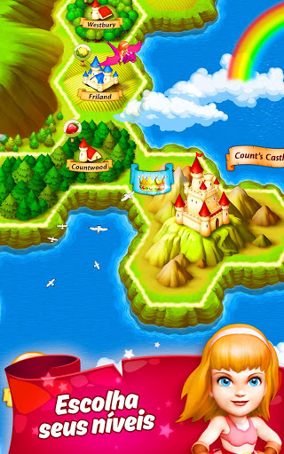 Salta para os Reinos dos Doces mágicos, viciante jogo de match-3 infinitamente divertido e GRÁTIS! Explosão de doces e conquista os teus reinos!