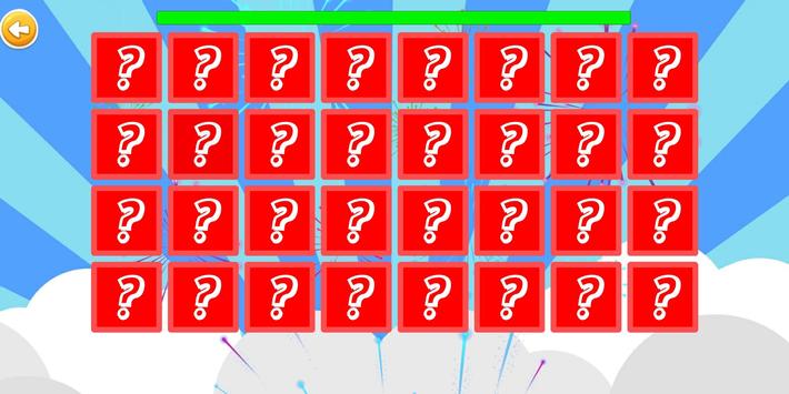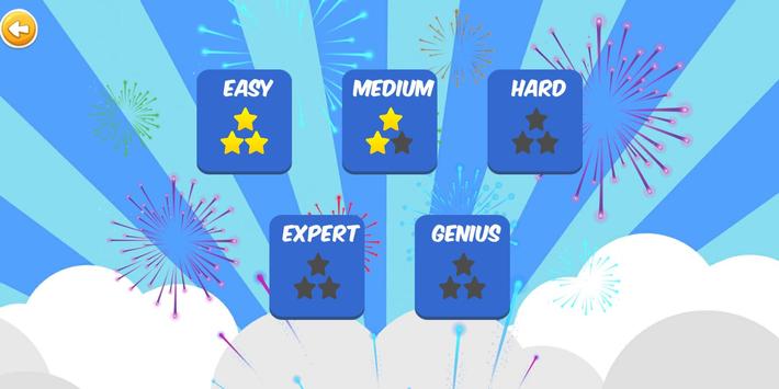 The game contains 5 levels : Easy 3x2, Medium 4x3, Hard 6x3, Expert 6x4 and Genius 8x4