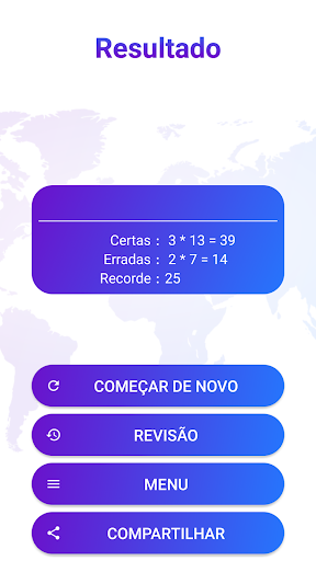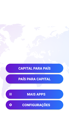 Você pode escolher jogar com capitais de paises de 5 continentes do mundo; jogar capitais do mundo jogo quiz aplicativo com os continentes selecionados ou todos os continentes. Você pode decidir se você quer competir por um lugar no Tabela de líderes, aprender mais sobre paises e capitais ou apenas jogar jogos divertidos.