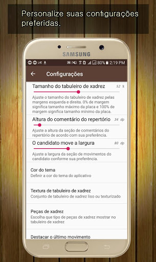 ♞ Personalize o tema do aplicativo, a cor e a textura do tabuleiro de xadrez.