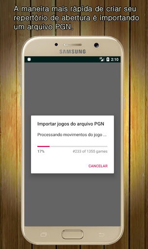 ♞ Capacidade de importar / exportar arquivos PGN de / para o seu repertório, incluindo piadas, comentários e linhas de variação.