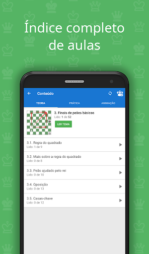 Este é um programa para os que já conhecem as regras de xadrez, mas ainda não estão familiarizados com os seus procedimentos básicos. Ao longo deste curso, vai aprender os conceitos e recursos fundamentais para melhorar seu jogo, compreendendo mais sobre temas tais como o desenvolvimento, o centro, os princípios táticos, as leis fundamentais dos finais e muito mais.