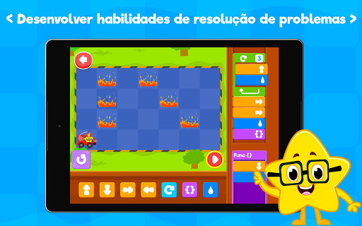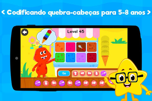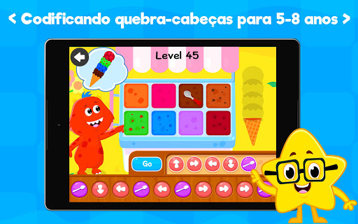 Usando este aplicativo, as crianças aprenderão os conceitos básicos de programação, com sequenciamento, loops e funções, com jogos de codificação. Existem 11 jogos de codificação para crianças: