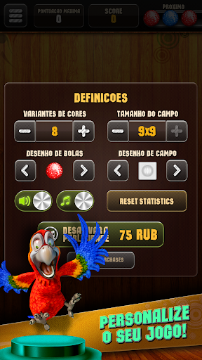 • Você pode definir o tamanho do tabuleiro e cores das bolas