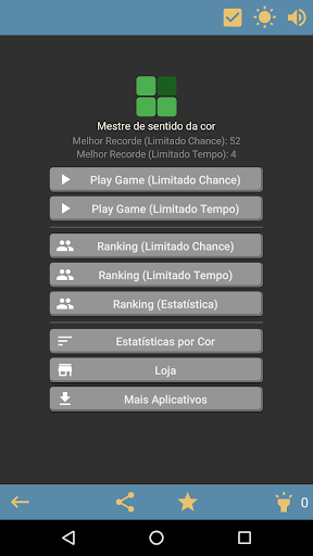 The statistics menu displays user's cumulative color perception score, which is based on user's game play.