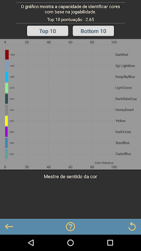 O menu de estatísticas exibe a pontuação de percepção de cores cumulativa do usuário, que é baseada no jogo do usuário.