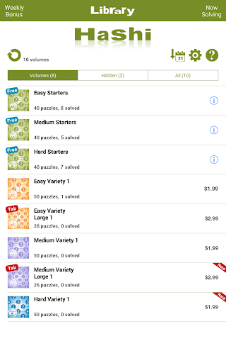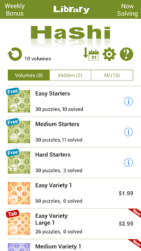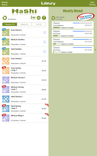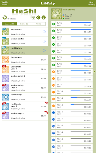 Para mais diversão, Conceptis Hashi inclui uma seção de bônus semanal, proporcionando um quebra-cabeça extra a cada semana.