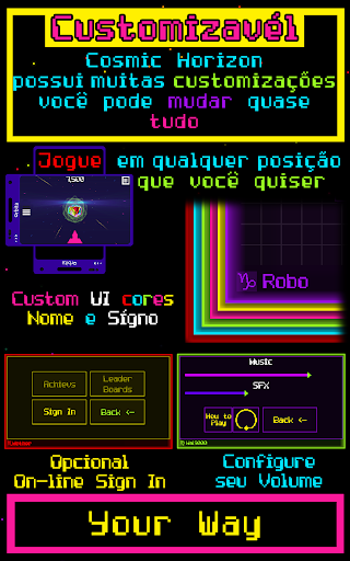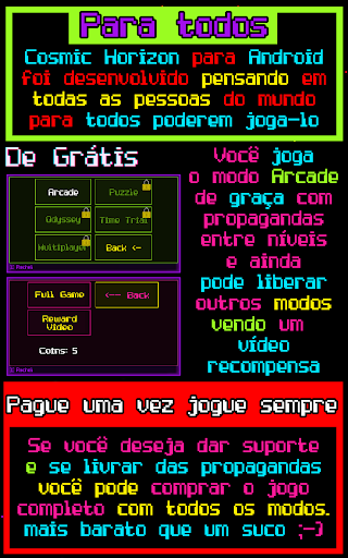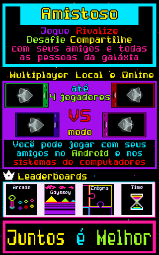 Você pode jogar Cosmic Horizon com seus amigos nos dispositivos Android e também em computadores com os sistemas: Windows, Linux e MAC, através de seu sistema multi-player local e online.
