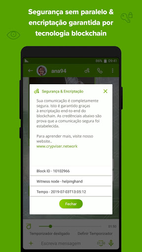 Bate-Papo Seguro do Crypviser introduziu uma nova era de criptografia baseada em tecnologias Blockchain. Ataques às suas mensagens são impossíveis porque a encriptação de chaves crucial são verdadeiramente autenticadas e distribuídas por milhares de nós blockchain.