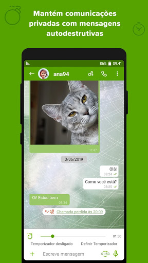 O usuário pode decidir a que hora a mensagem se irá auto destruir, em ambos os lados da conversa.