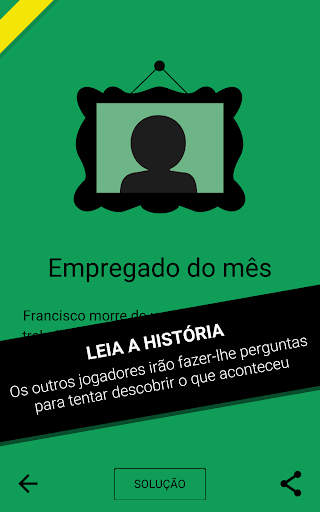 Depois, o narrador lê sua solução sem dizer às outras pessoas. Os outros jogadores deverão fazer perguntas para resolver o enigma.