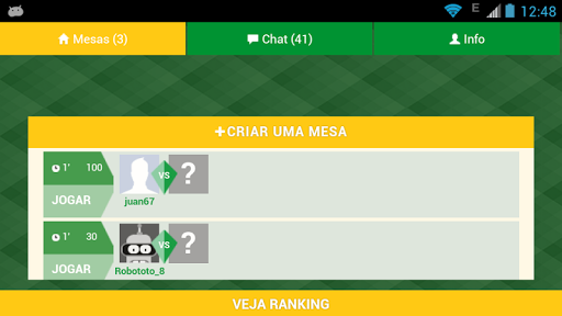 - Criação de salas, escolha de jogadores, quantidade de tempo , em pares , etc .