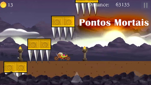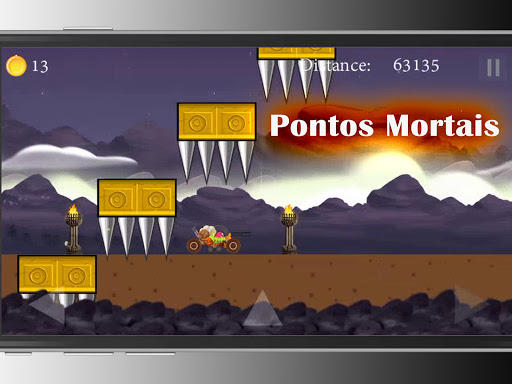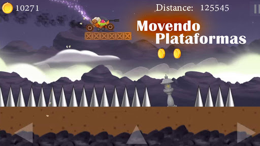 - Pular de rampas, plataformas para atravessar picos, obstáculos e buracos