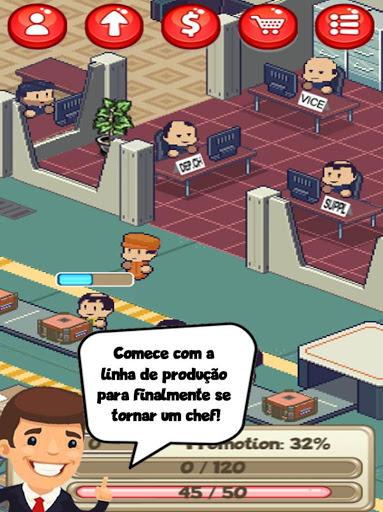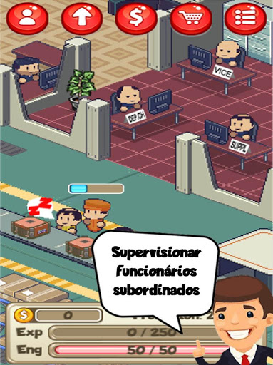Torne-se um funcionário de uma fábrica tentando avançar na carreira pelo seu trabalho árduo.