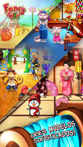 Combine e costure vestidos, bolsas e conjuntos lindos e irresistíveis. Faça novos visuais coloridos para os clientes amigos de Fancy Tale: a gata Catherine, o pinguim Pip e muito mais!