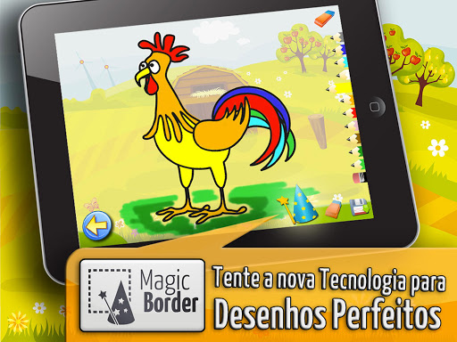 A criança também vai se divertir descobrindo todos os objetos do fundo. Além de ouvir os sons do animais.