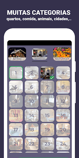 🔎 Muitas categorias, como quartos, comida, Natal, animais, cidades e muito mais