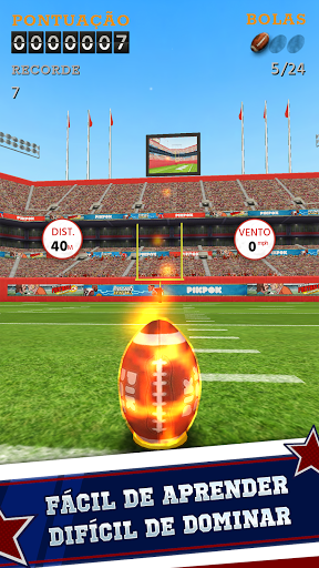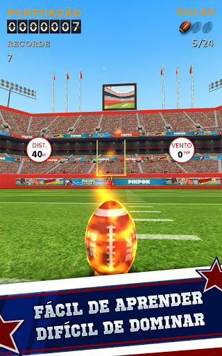 Com controles fáceis de aprender, mas difíceis de dominar, Flick Kick® Field Goal é um jogo de futebol americano viciante que você não vai conseguir largar! Dê chutes em curva e ganhe recompensas com condições que mudam o tempo todo. Prove suas habilidades neste jogo que é um "must" para qualquer fanático por futebol americano!