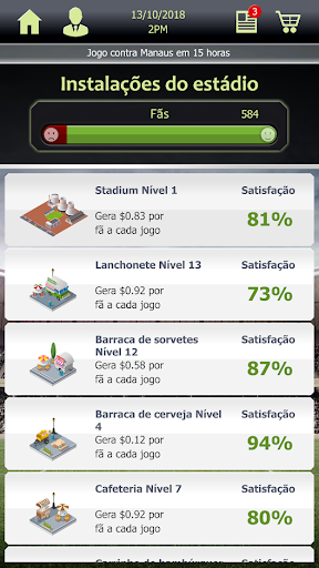 - Gere receita, realize investimentos e receba doações para valorizar seu clube.