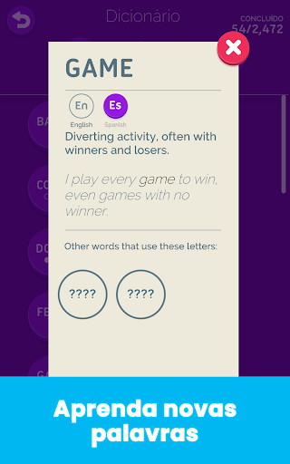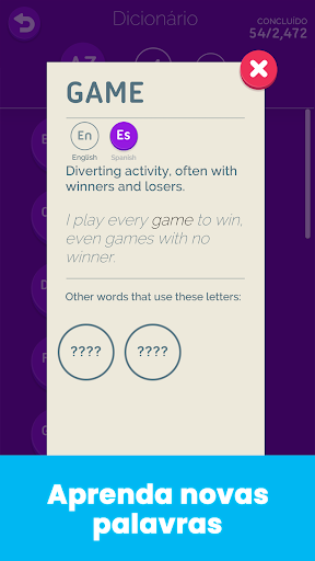 - Alterne entre jogar em inglês e espanhol ou crie palavras nos dois idiomas!