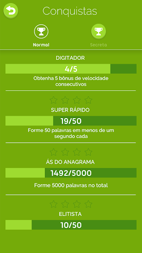 A tela de dicionário torna fácil aprender novas palavras e melhorar suas habilidades linguísticas. Compita com seus amigos para ficar no topo do placar e seja o campeão do Four Letter! Se você estiver interessado em um desafio pessoal, há muitas conquistas diferentes nas quais você pode progredir e completar.