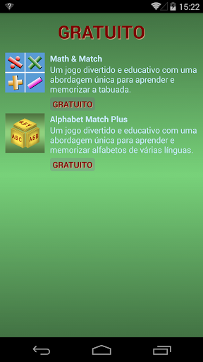 "Fruit and Match" apropriado para crianças jovens que acabou de aprender as letras, assim como adultos que querem aprender habilidades básicas de língua estrangeira. Com a ajuda da tecnologia de síntese de fala, você pode aprender a pronunciar palavras de frutas em muitas línguas! O design exclusivo do "Fruit and Match" provou ser uma maneira eficiente e eficaz de aprender rapidamente o básico das línguas estrangeiras. E é um jogo grátis!