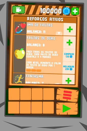 O que você precisa para se tornar o melhor corredor? Reflexos rápidos? Atenção? Não é suficiente! Em "Fruits miner" é também importante que tipo de reforço você escolhe para o jogo. Você quer aumentar a velocidade, recolher muitas moedas, percorrer um longo caminho - escolha o reforço necessário, combina-o e alcance o objetivo no túnel de obstáculos. Passo a passo, melhore seus reforços para alcançar novas metas. Desbloqueie novos heróis e torne o jogo ainda mais brilhante.
