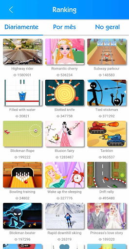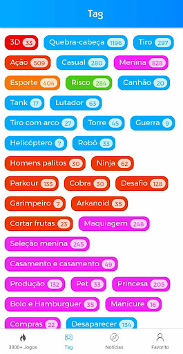 Inclui jogos de todas as categorias como Arcade, Adventure, Sports, Racing, Puzzles, Logic, Memory, Strategy e Action game.