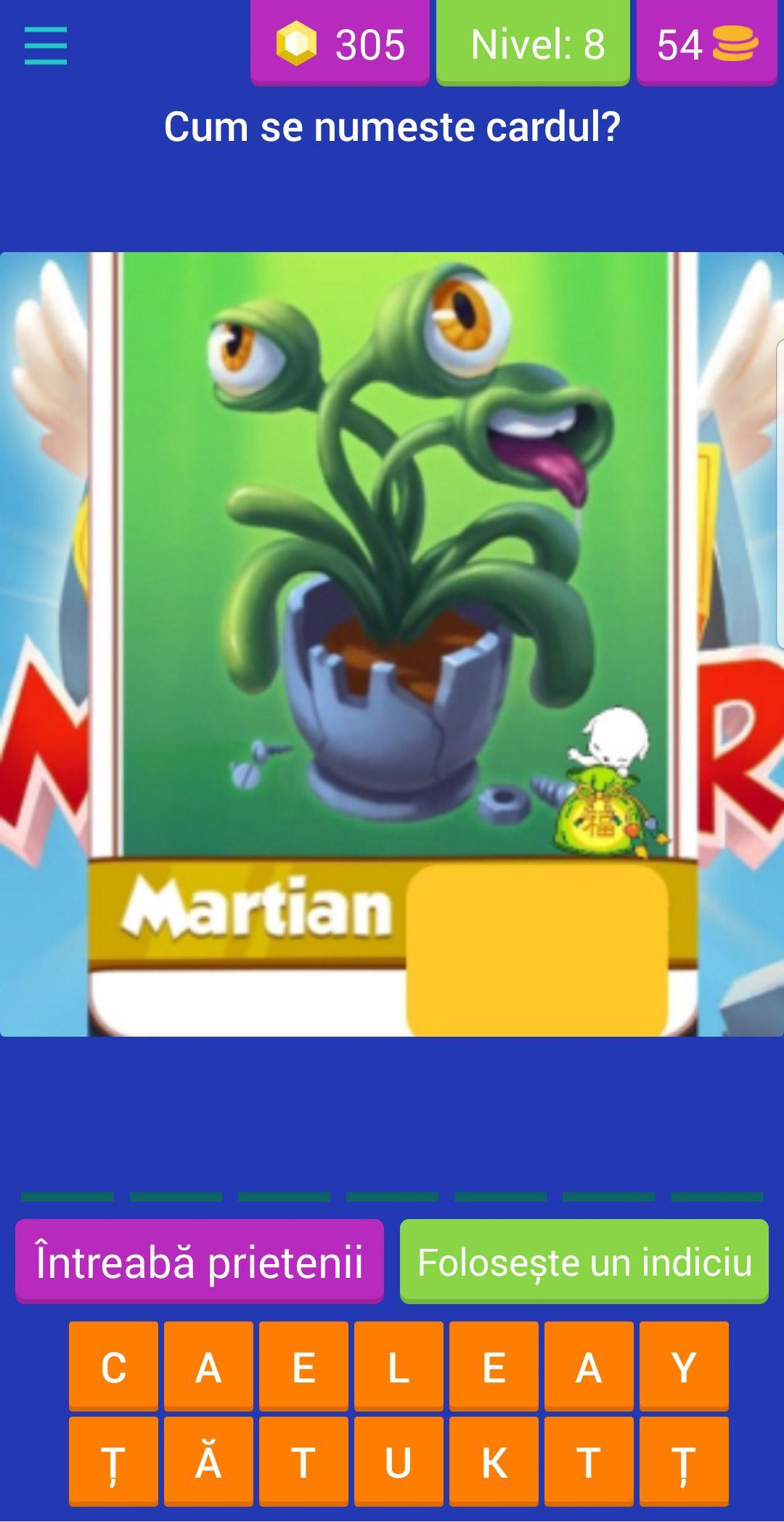 Ghiceste din Coin Master este un joc dedicat jucatorilor CM , un joc bazat pe intrebari din joc, zilnic vor fi incarcate nivele noi ,iar raspunsul corect va, va aduce cadou cardul dorit pentru a complecta un set sau mai multe seturi,