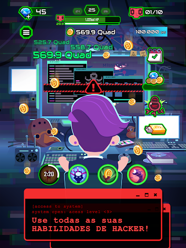 Lute para acumular criptomoedas suficientes para melhorar as suas habilidades de hacker e também de seus aliados. Escolha quais servidores atacar, prepare seus worms e clique para superar os desafios que irá encontrar!