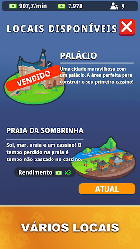 Comece com um pequeno cassino e trabalhe bastante para que o seu negócio cresça. Adicione novos jogos para criar uma experiência emocionante onde os visitantes podem jogar pôquer, roleta, vinte-e-um ou tentar a sorte nas máquinas caça-níqueis.