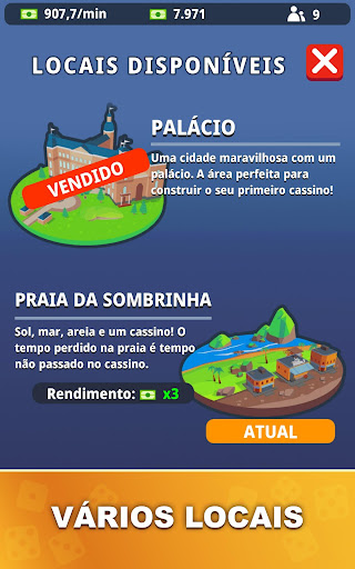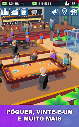 Melhore as atrações do seu cassino com uma nova mesa de pôquer, uma bola de roleta de ouro ou novos jogos para as máquinas de arcade. Aumente o seu estacionamento e inicie campanhas de marketing para atrair mais visitantes para o seu estabelecimento de jogos.