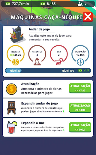 Gerencie o seu bar de coquetéis e cabine de trocas com cuidado para ganhar dinheiro. Expanda o Cassino com novos andares e desbloqueie jogos e máquinas incríveis.