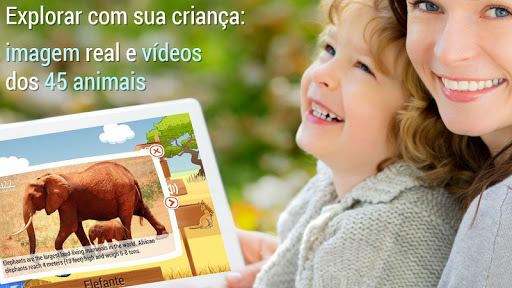 - Selecione o ícone de imagem para ver imagens de animais reais , o ícone de vídeo para ver o animal em movimento e os pais podem ajudar a explicar as crianças os fatos únicos de cada animal que são apresentadas com as imagens.