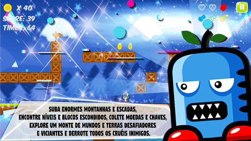 Suba enormes montanhas e escadas, encontre blocos e níveis escondidos, colete moedas e chaves, explore muitos mundos e terras desafiadoras e viciantes da selva e derrote todos os cruéis inimigos.