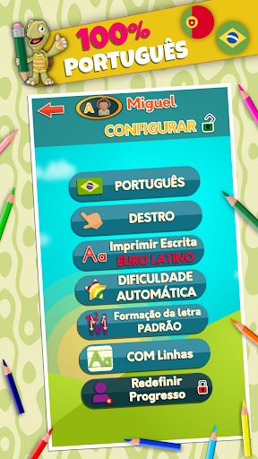 • 5 níveis de progresso, codificados por cor para cada glifo; permite aos pais e professores uma avaliação imediata do progresso e das letras mais usadas do alfabeto.