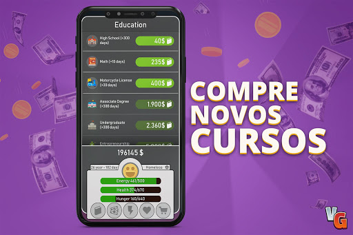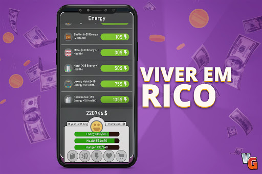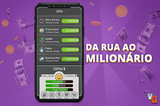 💲 Comece na rua e alcance os milionários. 💲 Você pode melhorar a si mesmo comprando educações e trabalhando em melhores condições. 💲 Você pode comprar casas e iates de luxo coletando dinheiro.