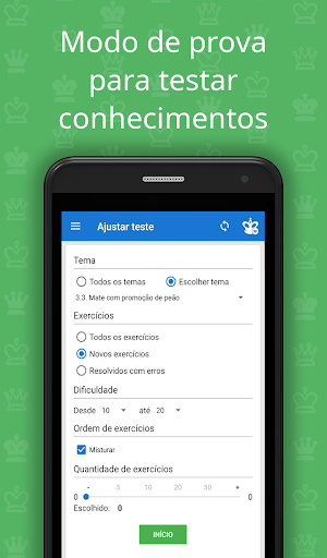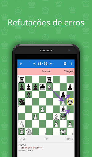 Se está começando a aprender jogar xadrez, você deve saber dar o xeque-mate em 1 lance! Este curso foi elaborado para ajudar você a aprimorar a técnica de mate em 1 lance. Uma grande quantidade de exercícios (2500) torna este app numa excelente ferramenta para uma rápida aprendizagem, destinada tanto aos enxadristas iniciantes, como aos que já têm seu rating ELO.
