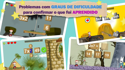 - 3 níveis de dificuldade crescente para cada tabuada