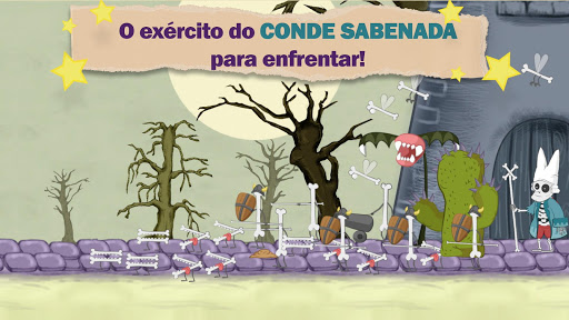 Escolha o seu herói (um pequeno vampiro ou uma pequena bruxa) e enfrente o Conde Sabenada!