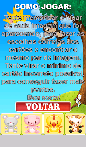 O jogo da Memória Animais Infantil, é um ótimo entretenimento e sem restrição de idade, para você interagir e jogar com toda a família.
