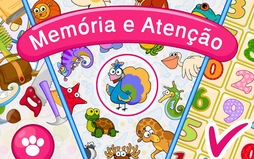 Este pacote inclui 7 jogos para o desenvolvimento da memória e da atenção de crianças na faixa etária dos 4 aos 7 anos de idade: