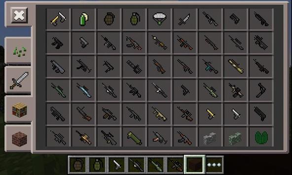 Mod Weapon for MCPE comes with a custom user interface for each weapon and an advanced weapon system including things like ammunitions and unique crafting recipes for each weapon. More than 40 weapons are included in the mod. Everything from handguns to massive rocket launchers and handheld throwable items like grenades and molotovs.