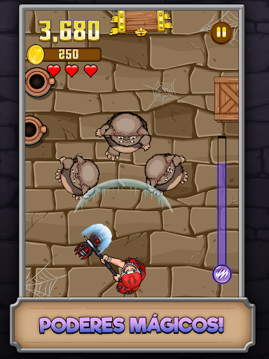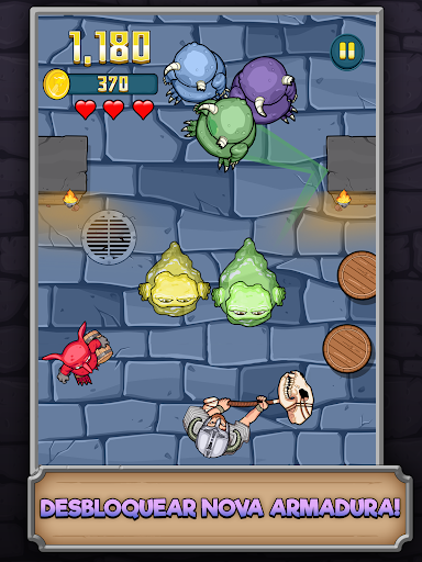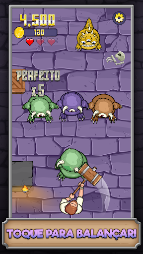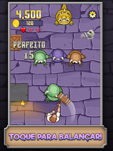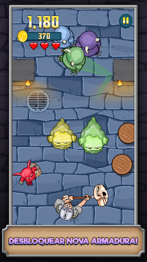 Equipe sua armadura, pegue sua arma e entre no calabouço! Jogo simples de um toque que permite que você gire seu martelo e esmague monstros, ganhe moedas e saqueie ao longo do caminho. Derrube os inimigos uns nos outros ou jogue-os fora pelos objetos da cadeia. Desbloqueie novos upgrades para se aventurar mais profundo no calabouço e alcance novas pontuações. Abra baús de tesouro quando sua corrida acabar e consiga mais itens para o rastreador de masmorra em grande estilo!