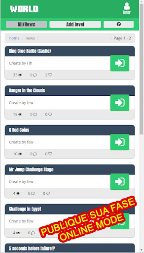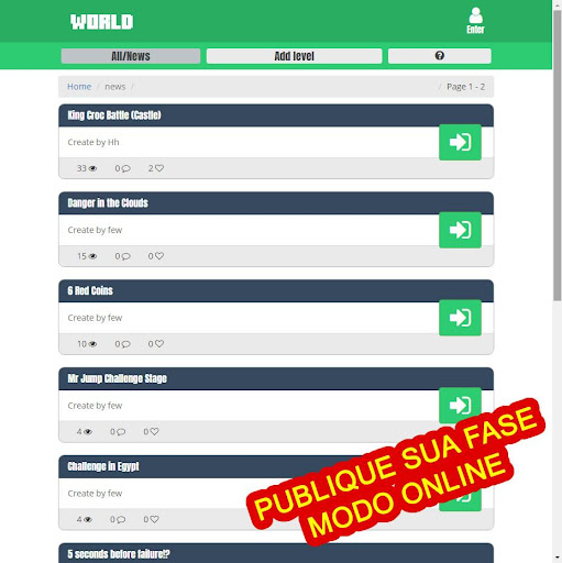 Jogo de plataforma de correr e pular com um criador de fases. Crie uma super aventura e compartilhe seus níveis.